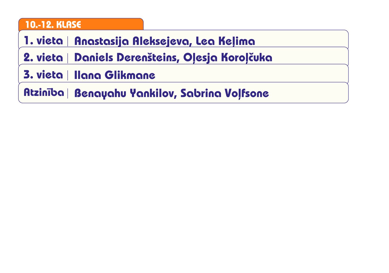 Zemāk publicējam Ivrita valodas Valsts 1. atklātās olimpiādes rezultātus.