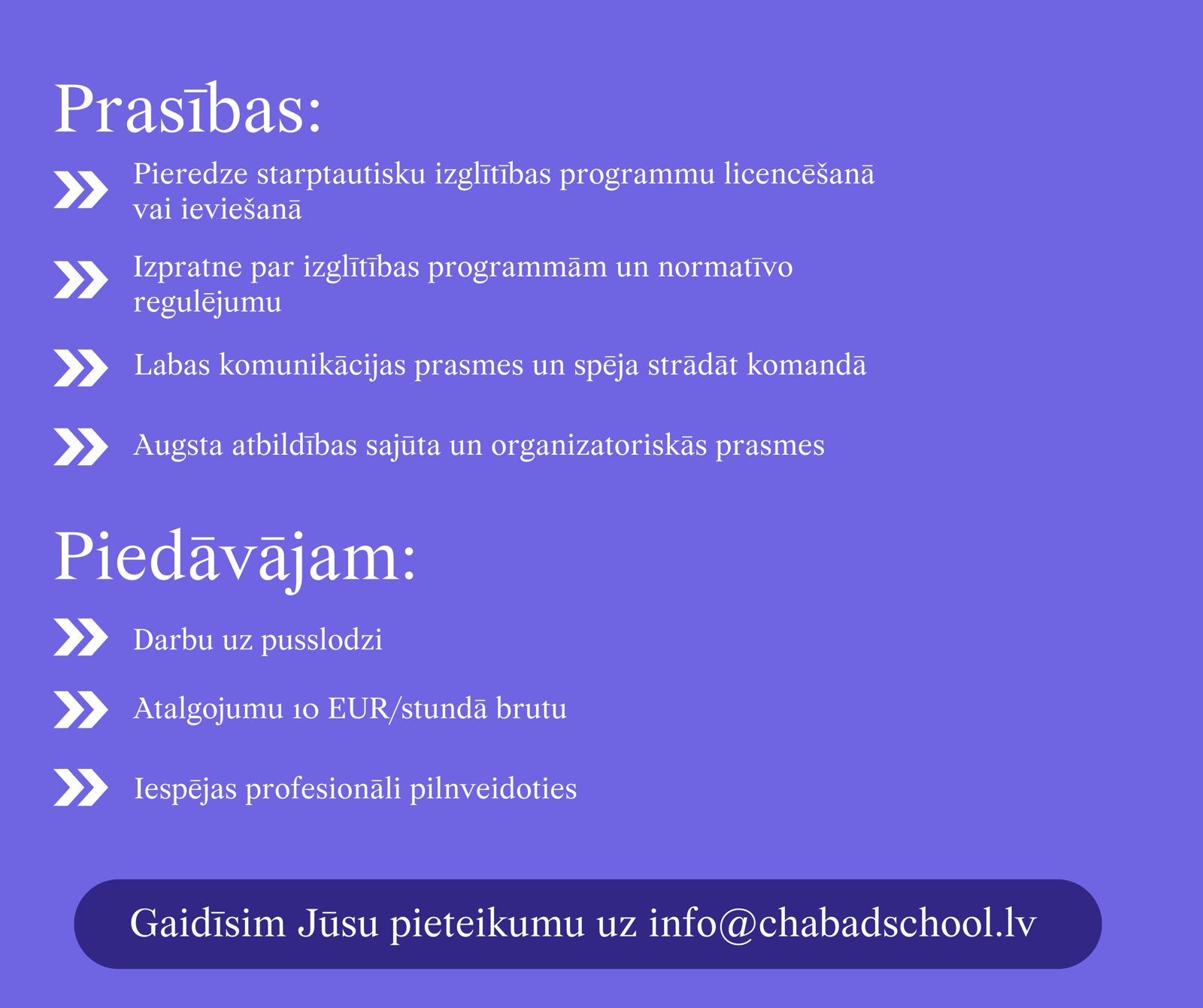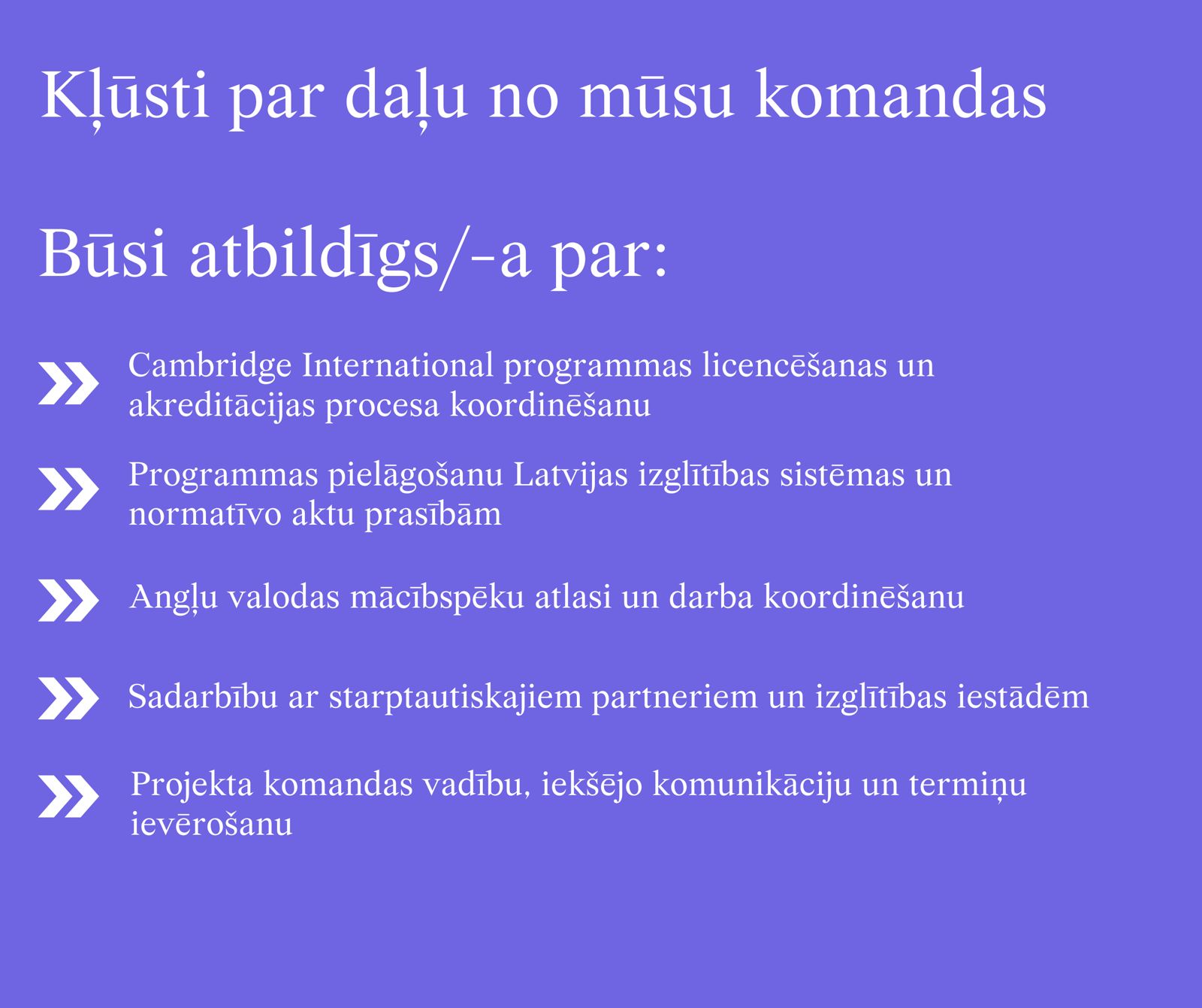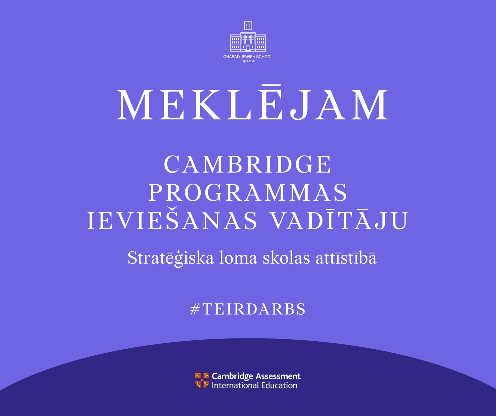 Meklējam projekta vadītāju Cambridge programmas ieviešanai skolā
