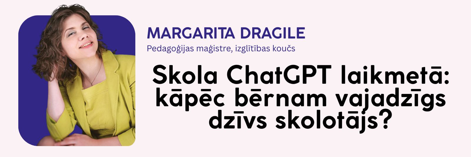 Margarita Dragile skaidros, ar ko dzīvs skolotājs atšķiras no algoritma — un kāpēc šī atšķirība kļūst arvien svarīgāka. Jūs uzzināsiet, kā atbalstīt bērna motivāciju bez spiediena un kā ar viņu runāt tā, lai attīstītu domāšanu, nevis aizstātu to ar gatavām atbildēm.