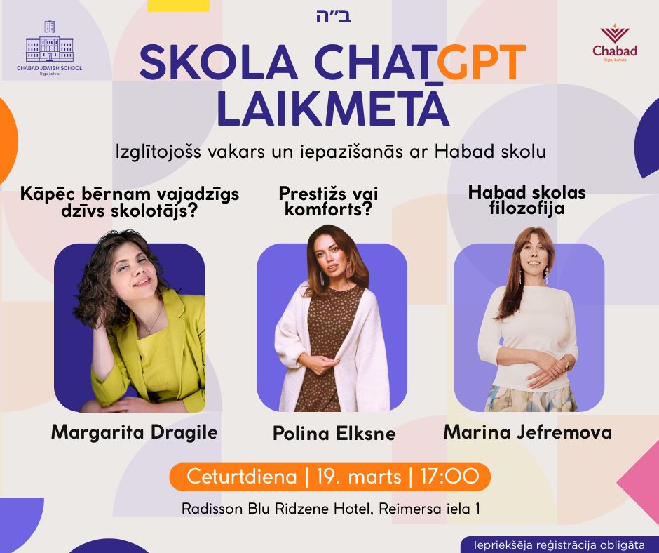 Būs arī iespēja iepazīties ar Habad skolu, uzzināt vairāk par mācību programmu un uzņemšanas kārtību.