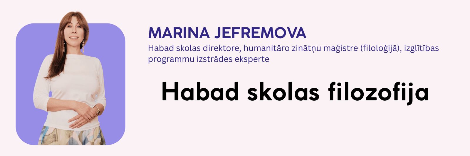 Marina Jefremova pastāstīs par ebreju vērtībām, kas ir skolas pamatā: kā tās izpaužas ikdienā, attiecībās starp skolēniem un skolotājiem, audzināšanas un mācību pieejā. Tā ir iespēja no iekšienes saprast, ko nozīmē ebreju izglītība — un uzdot jautājumus tieši.